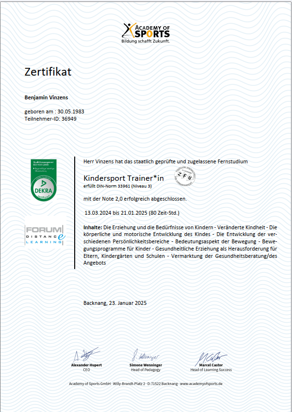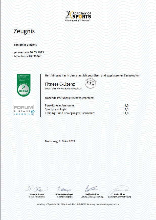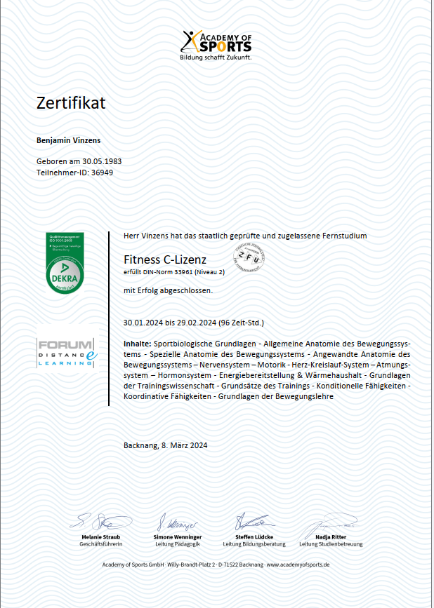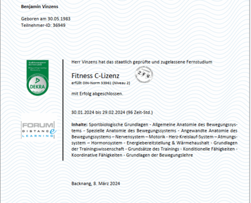 - Fitness Trainer C-Lizenz (Academy of Sports)