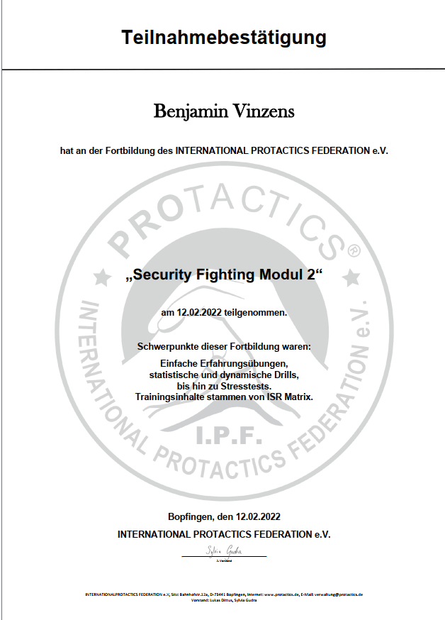 - Protactics S.A.T Instructor für Situatives Handlungstraining