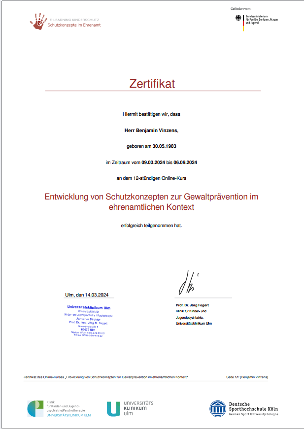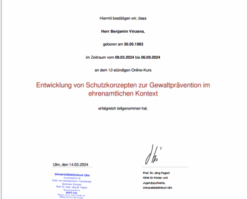 - Multiplikatorausbildung Schutzkonzeptentwicklung zur Gewaltprävention im Ehrenamt