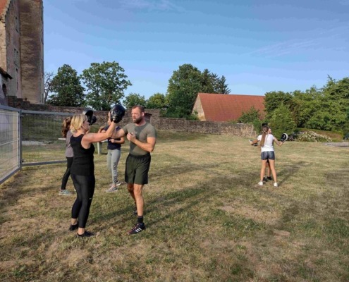 Jede Einheit hat eine klare Struktur. In der Regel starten wir mit einem kurzen Theorie-Block. Nach einem gezielten Warm-up arbeiten wir an einem Kernthema, bauen es über Drills und Partnerübungen auf und testen es schrittweise unter Belastung. Stressdrills und kurze Szenarien, dosiert und zum richtigen Zeitpunkt eingesetzt, helfen dir, ruhig zu bleiben, Entscheidungen zu treffen und handlungsfähig zu bleiben, ohne dich zu überfordern.